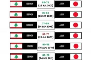 两队最近一次交锋是2011年亚洲杯,当时黎巴嫩在5-8名排位赛中80-78险胜日本队。